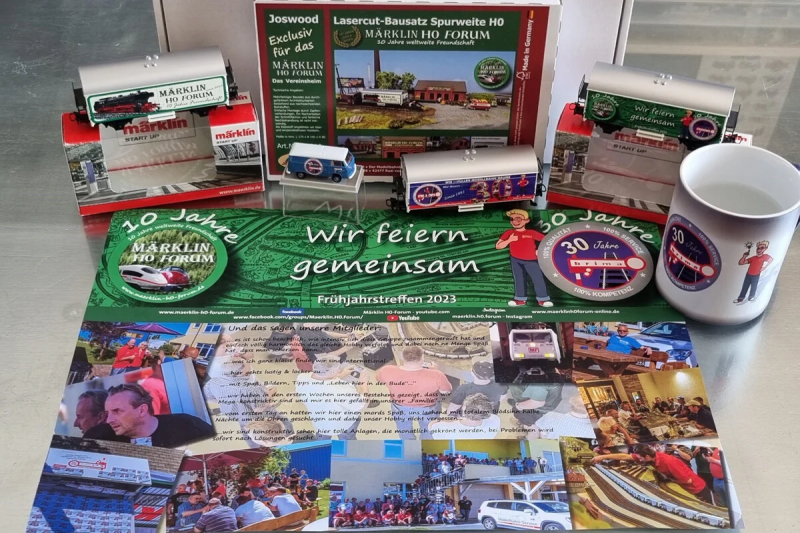 Am Wochenende des 3. Juni 2023 waren wir im Gau-Algesheim, bei der gemeinsamen Feier zum 30-jährigen Jubiläum der Brima Modellanlagen GMbH und zum 10-jährigen Jubiläum des Märklin H0-Forums (auf Facebook). Und es war super (schön) organisiert, viele alte und neue Modellbahnfreunde gesehen und mit ihnen gesprochen